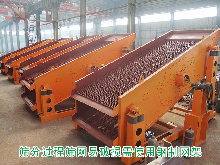 使用礦用篩分機進行篩分時,因其篩分的物料會有一定的的重量,使用普通網(wǎng)架容易造成破損的問題,所以需要使用鋼質(zhì)網(wǎng)架來代替木質(zhì)網(wǎng)架,增加網(wǎng)架和篩網(wǎng)的承受能力,更換為鋼制網(wǎng)架的大型礦用振動篩不僅換網(wǎng)比較方便,更可以延長篩網(wǎng)、篩機的使用壽命。